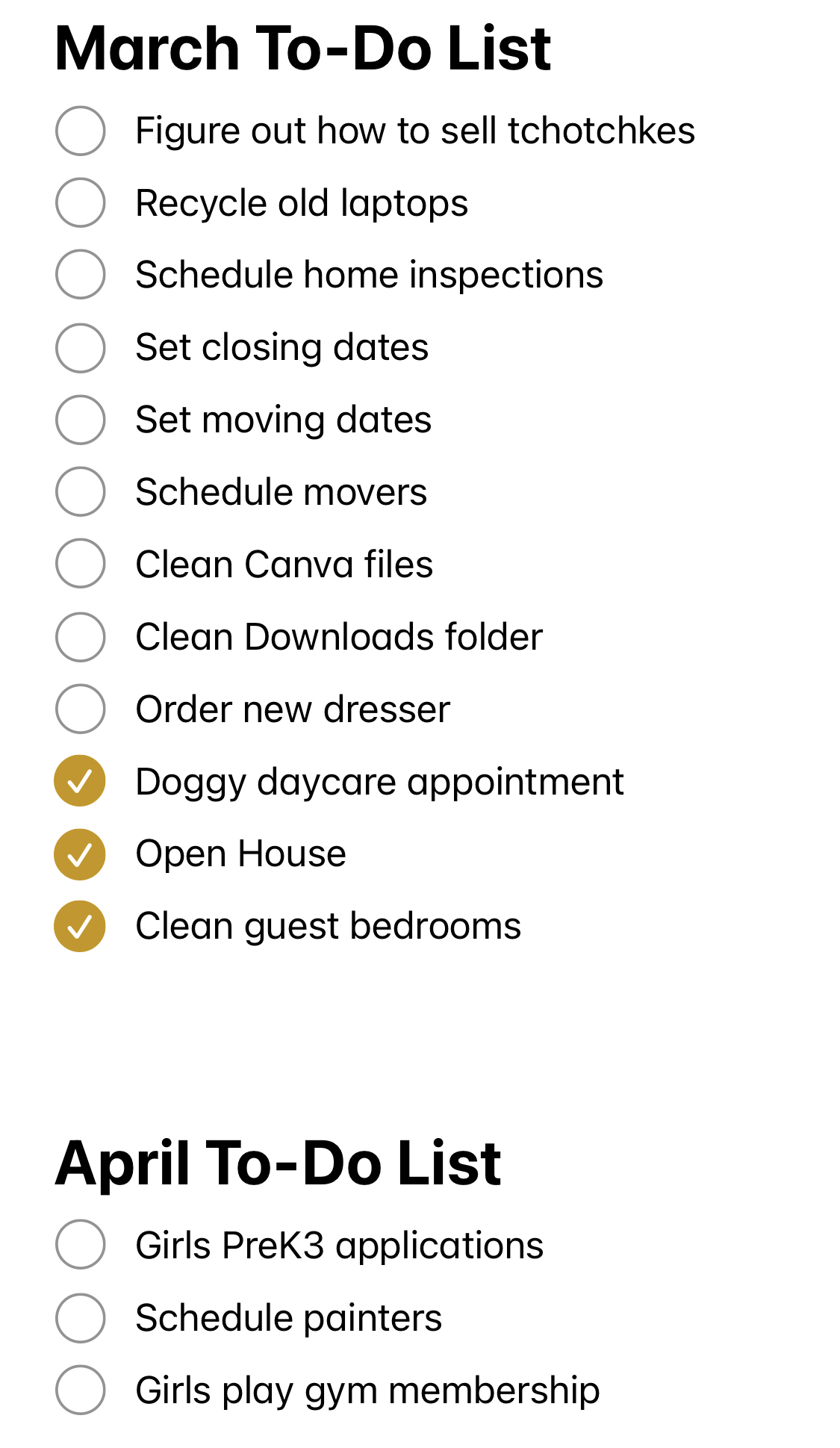 I feel like all of the prep work we’ve done since November has paid off, but that doesn’t mean that it was an easy road. I specifically started Moving Phase I so we could have an easy buying/selling process, but it has still felt stressful.